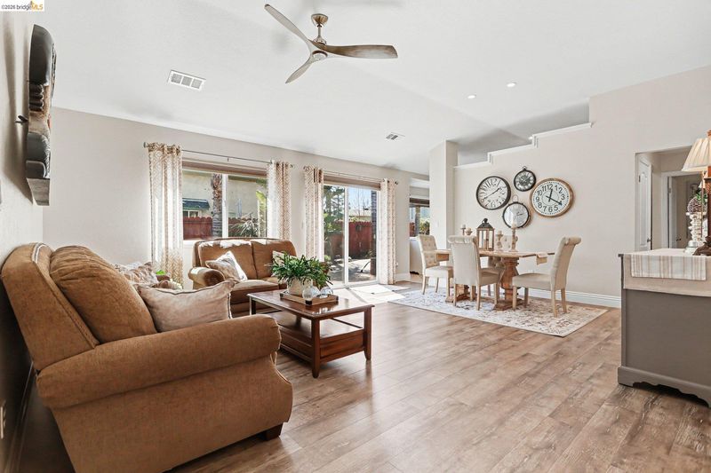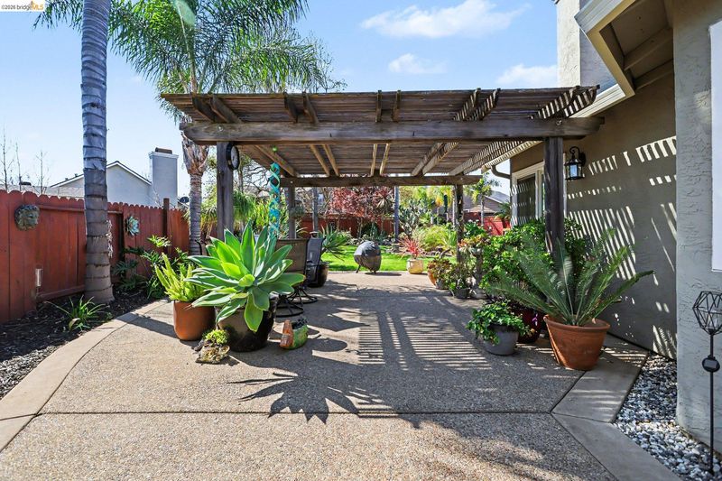 Welcome to this beautifully updated single-story home located on a quiet cul-de-sac in the desirable Vintage Parkway neighborhood. This light and bright 3-bedroom, 2-bath home offers 1,492 sq ft of living space on an expansive 8,255 sq ft lot and includes a spacious 2-car garage. Extensively updated in 2020, the home features designer bathrooms, new interior doors, trim and baseboards, fresh paint, new windows, 2” blinds, and new flooring throughout most of the home. The kitchen includes upgraded cabinetry, granite countertops, tile flooring, and updated appliances. The inviting family room features a cozy fireplace. The primary suite offers a sliding glass door to the backyard and a private pergola with a fan. The park-like backyard showcases mature landscaping and a tranquil koi pond, while the side yard includes a workshop. The 2-car garage also features built-in shelving for additional storage. Major upgrades include a newer roof (2017) and HVAC system (2018). Conveniently located within walking distance to downtown Oakley, Big Break Regional Trails, and Vintage Elementary School, with easy freeway access for commuting.