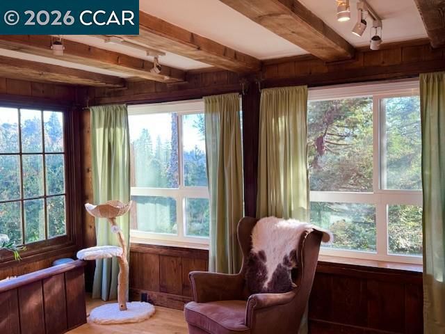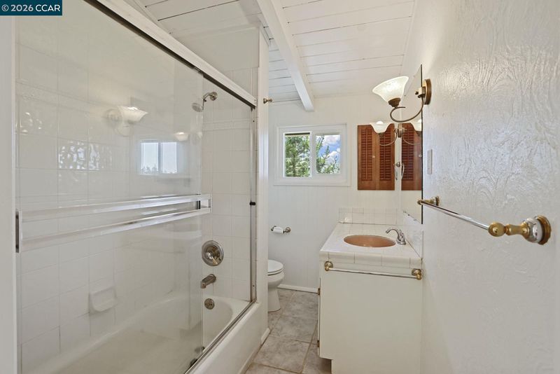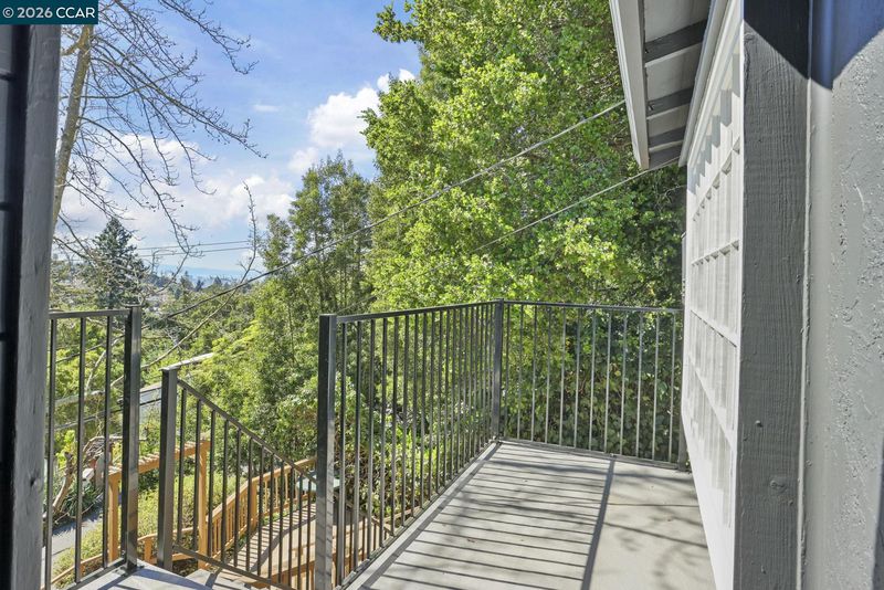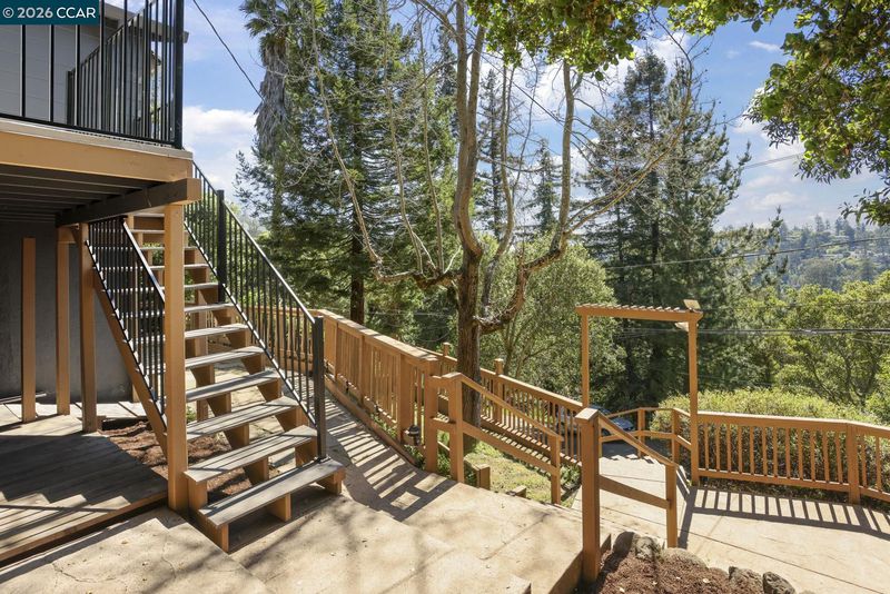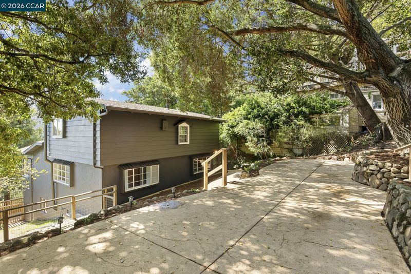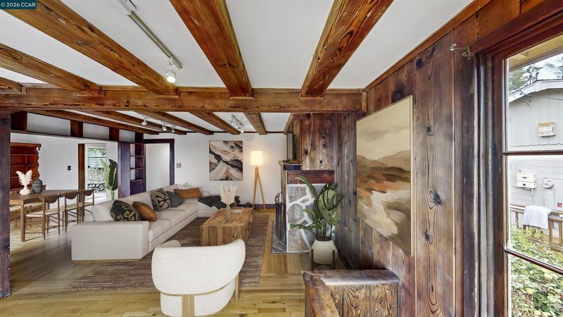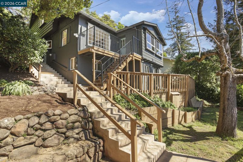 Beautifully updated 1925 cabin-style home, perfectly blending rustic character with modern comfort. The 3 bedroom 1.5 bath main residence is approx. 1,538 sq. ft. and features a welcoming stone fireplace, hardwood floors, wood-framed windows, exposed beam ceilings, and classic paneling—all reflecting the home’s original craftsmanship. The remodeled kitchen pairs natural wood cabinetry with upgraded stainless steel appliances, including a gas cooktop, double ovens, built-in microwave, and dishwasher. The lower-level studio (approx. 438 square feet) offers a private entrance, tile floors, a full kitchen, separate bathroom, and versatile living space—ideal for guests or rental income. Nestled among stately oaks, the property embraces nature with stamped concrete walkways, outdoor patios, and filtered views of downtown Oakland. Other outdoor upgrades include a spacious and level concrete terraced yard ideal for entertaining and a new front deck for soaking in the views of natural beauty plus a glimpse of the Bay. A spacious two-car garage/storage unit sits at the top of the lot, adding convenience and functionality. Just minutes from downtown Montclair, with local shops, restaurants, and grocery stores, plus convenient connections to Highway 13 and Highway 24. Open 3/21 & 3/22.