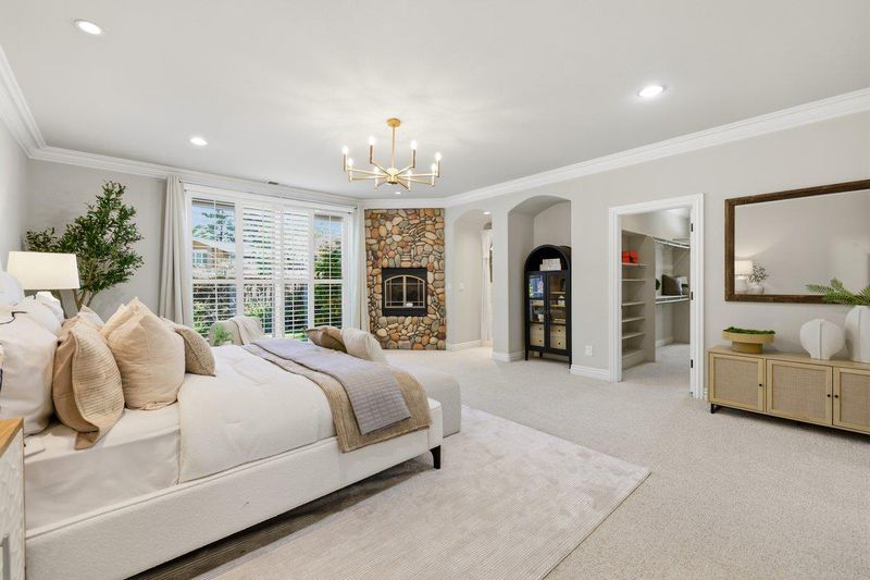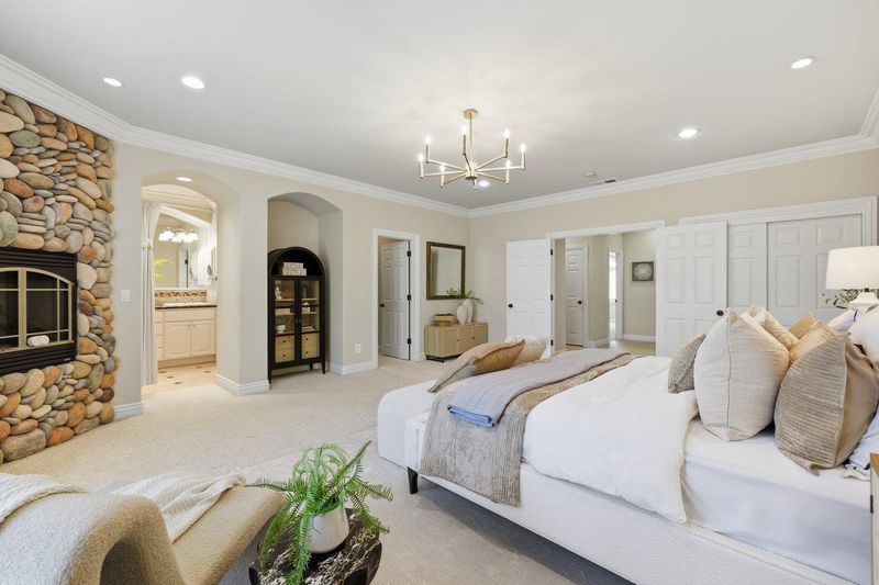 Rare turnkey, single-story custom manor in the prestigious Almaden Country Club area. Built in 2005 with uncompromising quality, this 5BR/4.5BA estate features a rare 4-car garage and 3,000+ sq ft of refined living space. The architectural journey begins with a striking river-rock façade and stone archway leading to an interior of breathtaking scale. Enjoy massive vaulted ceilings with structural beams and a floor-to-ceiling organic stone fireplace. The gourmet kitchen is a chefs dream, featuring premium cabinetry, granite counters, and gridded windows with panoramic views of Italian Cypress treesevoking a private Mediterranean villa. The versatile "1+4" floor plan is ideal for modern living: Primary Sanctuary: Private stone fireplace, heated ensuite floors, and garden access. Guest/Executive Wing: Completely separate suite with full bath and custom built-insperfect for a home office or guest quarters. Secondary Beds: Spacious rooms with Jack-and-Jill bath and indoor-outdoor flow. Lush, manicured grounds offer a private orchard with fruit trees. Perfectly positioned near Quicksilver Park, Almaden Lake, Whole Foods, and Costco. Served by top-rated schools including Leland High, with easy access to Hwys 85/87/280. The pinnacle of Almaden Valley living! You will never want to leave!