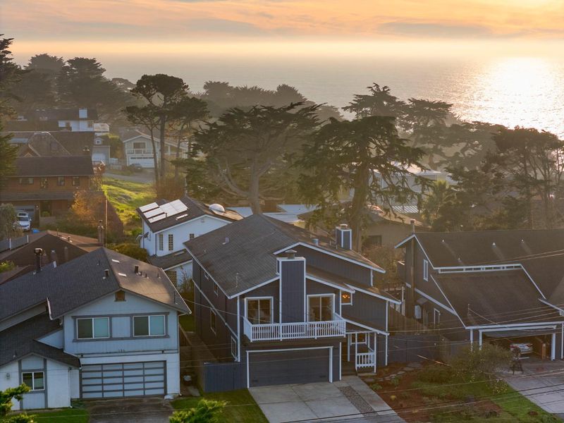 Ideally located just minutes from pristine Montara Beach, this coastal home captures ocean and mountain views, while offering a functional, spacious floor plan. Newly painted, light-filled interiors, and thoughtfully designed living areas, create the perfect setting for relaxed coastal living, and the newly designed landscaping offers a serene oasis. The garage floor highlights fresh, new epoxy. The home features five bedrooms and multiple living spaces, including an expansive family room with fireplace and new flooring, on the lower level. Upstairs, soaring ceilings frame an open-concept living, dining, and kitchen area anchored by a striking stone fireplace. Sliding doors lead to a deck with ocean sunsets and mountain vistas providing a beautiful backdrop. A short stroll to restaurants and cafes, as well as access to Montara Beach, and mountain hiking/biking trails, and minutes to Pillar Point Harbor's vibrant dining and marina. Convenient access to San Francisco and Silicon Valley completes this rare coastal offering. Come live the Montara dream!