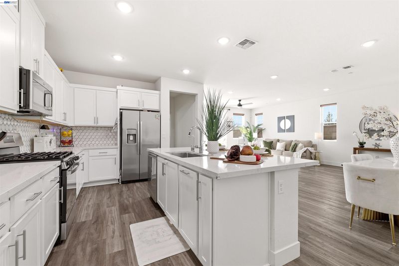 Stunning North-East facing corner home filled with natural light and thoughtfully designed for modern living! Offering approximately 2,313 sq ft on a spacious lot, this exceptional 4-bedroom, 3-bath residence features a highly desirable open floor plan with a full bedroom and bathroom on the main level—ideal for guests or multi-generational living. Perfectly positioned on a premium corner lot with no homes on three sides, this property provides rare privacy along with a bright, open feel throughout. Enjoy abundant sunlight streaming in from afternoon to evening, creating a warm and inviting ambiance in every room. Beautifully upgraded with high-end finishes, this truly one-of-a-kind home stands out from the rest. Benefit from energy savings with fully paid solar, while the fully finished front and backyard offer the perfect space for entertaining, relaxing, and enjoying outdoor living year-round. Community amenities include a sparkling swimming pool—perfect for warm summer days—along with nearby parks and recreation. Ideally located with easy access to major freeways, shopping, dining, and everyday conveniences. Low HOA! A perfect blend of comfort, style, privacy, and location—this is a home you don’t want to miss!
