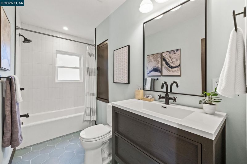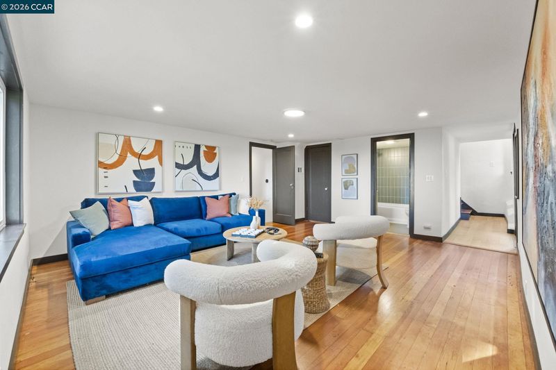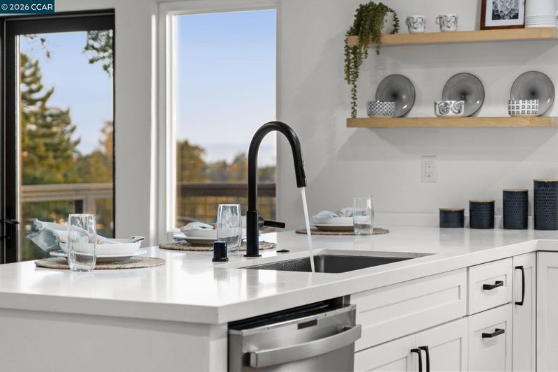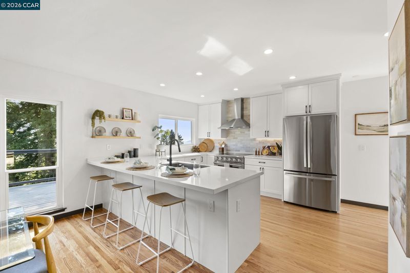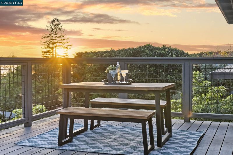 A quintessential Berkeley home where comfort, style, and Bay views come together in perfect balance. Adjoining lot at 1162 Miller available makes it the perfect compound. Behind a peaceful front patio, this light-filled residence reveals a split-level layout that feels both open and thoughtfully defined — offering a seamless flow between gathering spaces and private retreats. The chef’s kitchen is the heart of the home, featuring quartz counters, custom cabinetry, premium appliances, and a wine fridge. It connects effortlessly to the dining area and a generous deck, perfect for al fresco dinners or relaxed mornings overlooking the bay. Three inviting bedrooms share the main level, including one that functions beautifully as a dedicated home office with its own private entrance. The lower level enhances the living experience with a welcoming family room, separate media area, wet bar, full bath, and a guest bedroom that opens to a private deck surrounded by greenery. Two laundry areas and a two-car garage add convenience to the home’s thoughtful design. Amazing fruit trees and a bocce court complete the backyard. This home offers the perfect harmony of sophistication, comfort, and connection to nature — a serene East Bay retreat designed for modern living. BESO (5)