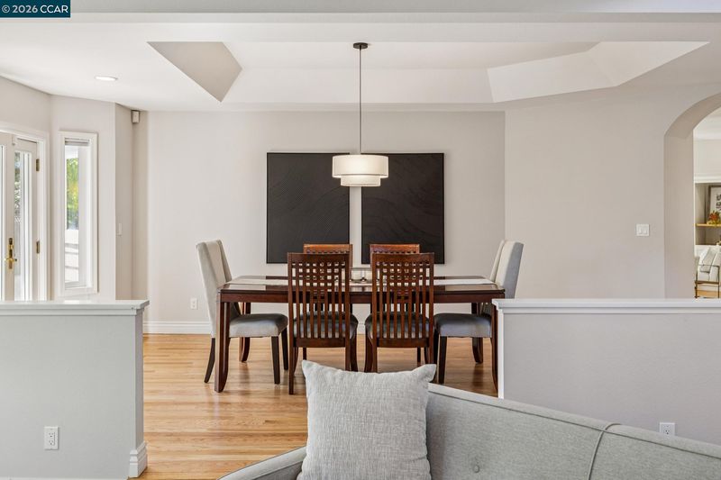 Tucked at the end of a court in coveted Alamo, this exceptional estate offers 3,500± square feet of refined living on an acre of pure privacy backing to open space. Soaring ceilings and rich hardwood floors create a light, airy ambiance throughout the main level, where a bedroom and full bath provide ideal flexibility for guests or multigenerational living. The gourmet kitchen—complete with high-end appliances, abundant cabinetry, and a generous island—opens seamlessly to the inviting family room with custom built-ins and a cozy fireplace, designed for effortless everyday living and memorable entertaining. Expansive gathering spaces flow outdoors to an easy-care yard, perfect for hosting or relaxing in total privacy. Upstairs, oversized secondary bedrooms offer comfort and versatility, while the beautifully remodeled primary suite is a luxurious retreat featuring a spa-inspired bath and spacious walk-in closet. A three-car garage, peaceful surroundings, and premier location complete this rare offering that blends elegance, functionality, and the best in Alamo living.