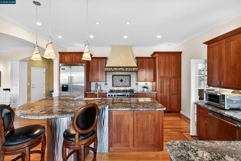 - Dishwasher, Double Oven, Gas Range, Plumbed For Ice Maker, Microwave, Range, Refrigerator, Self Cleaning Oven, Trash Compactor, Dryer, Washer, Gas Water Heater, 220 Volt Outlet, Breakfast Bar, Counter - Solid Surface, Stone Counters, Eat-in Kitchen, Disposal, Gas Range/Cooktop, Ice Maker Hookup, Kitchen Island, Range/Oven Built-in, Self-Cleaning Oven, Updated Kitchen, Wet Bar