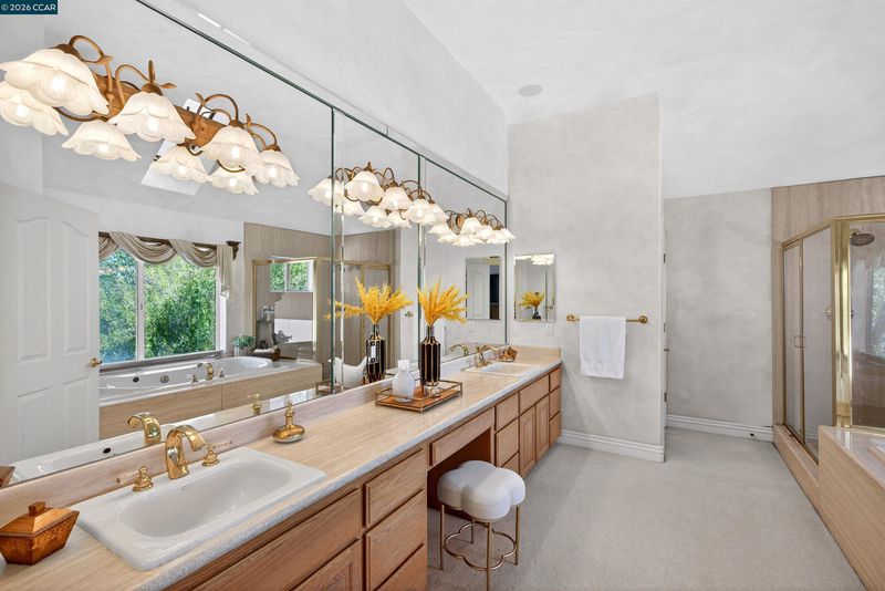 - Shower Over Tub, Tile, Double Vanity, Granite, Multiple Shower Heads, Window