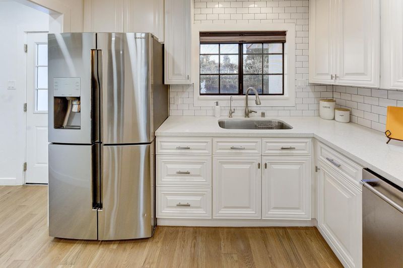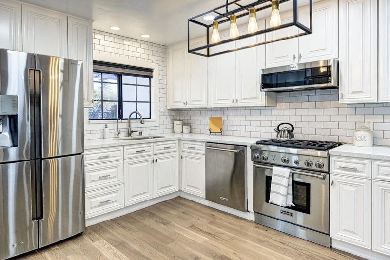 - 220 Volt Outlet, Cooktop - Gas, Countertop - Quartz, Dishwasher, Garbage Disposal, Ice Maker, Island, Microwave, Oven - Gas, Refrigerator