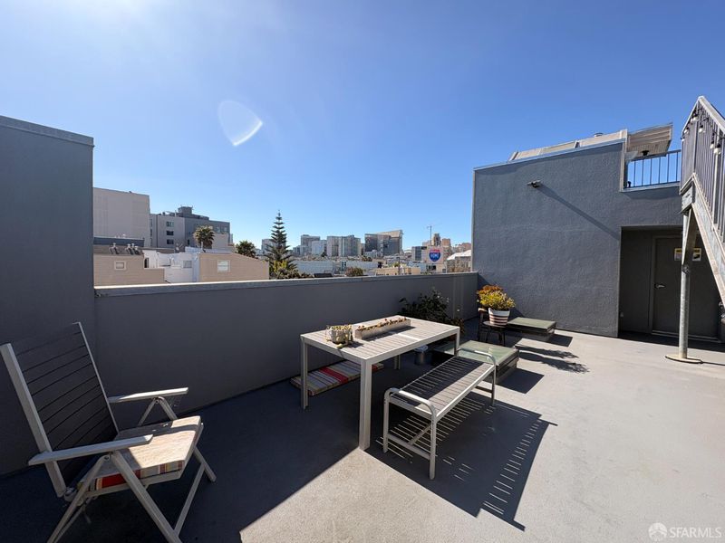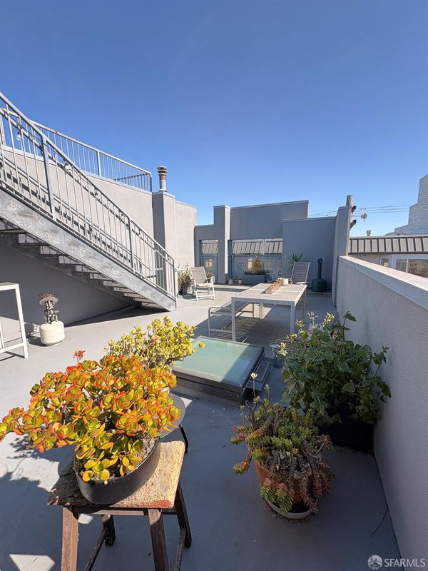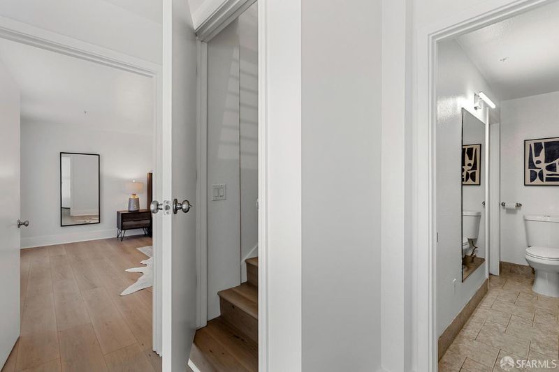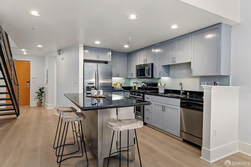 Spacious, bright & private this tri-level loft offers 2 beds and 2.5 baths. The main living area features soaring 16+ ft ceilings with floor-to-ceiling windows, which provide serene glimpses of trees & sky- a true urban oasis. The sliding glass doors lead to a small balcony to take in the fresh air. A glass-tiled fireplace keeps the space warm and cozy. The kitchen features a custom S/S & granite island that doubles as cook space/dining space. S/S appliances include a 5-burner gas range. The granite work surfaces are complimented by granite backsplash. A powder room, W/D & large closet with organizers completes this main floor. Ascend to the loft bedroom via an industrial steel staircase, which is nod to the heritage of SOMA. The top floor offers an en-suite bath, large walk in closet, spacious marble shower, and cork floors. The first floor has its own private entrance perfect for a roommate, guests or your live/work/creative lifestyle, this level comes w/its own full bath which features a large closet. Newer LVP flooring on the main and first floors. Ideally located near SOMA's best attractions including Yerba Buena Gardens, SF MoMA, and the Moscone Center. Whole Foods is just two blocks away, with Costco and Rainbow Grocery within walking distance. Close to tech and AI companies. Commuters dream-BART, Caltrain, MUNI, and freeways 280, 101, and 80. Very close to electric vehicle charging stations- Tesla, Electrify America and EVGo. This is the perfect home to be in the middle of it all!