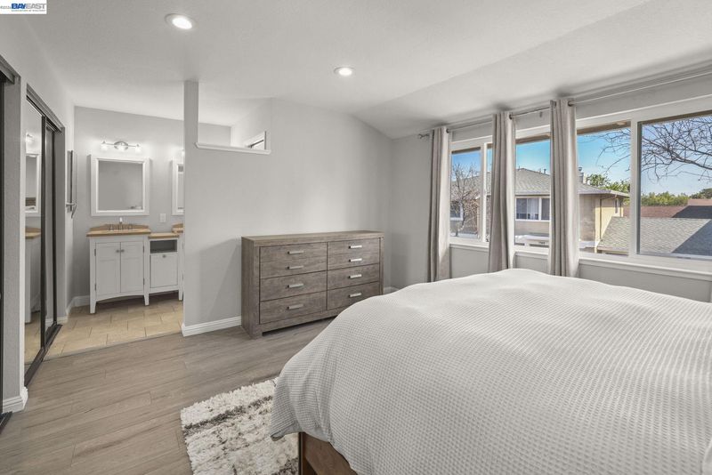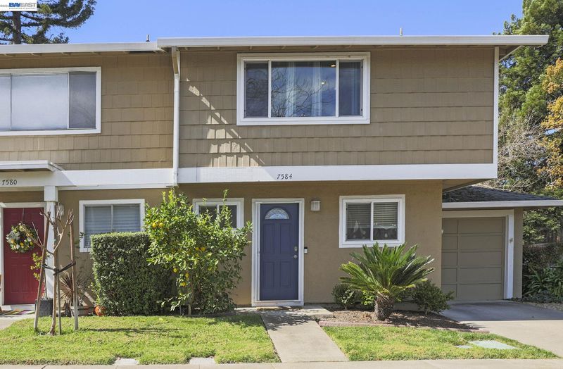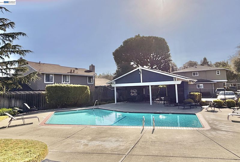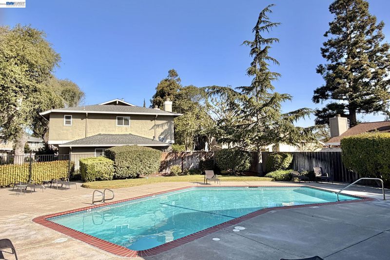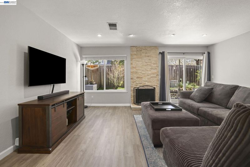 Welcome to this beautifully maintained two-story townhome style condo offering 3 bedrooms, 2.5 baths, and approximately 1,242 sq ft of comfortable living space. The home features updated flooring throughout, a bright open floor plan, and inviting indoor-outdoor living. The main level offers recessed lighting and a spacious living and dining area centered around a stone fireplace. Large windows and a sliding glass door bring in natural light and provide seamless access to the private backyard patio, perfect for relaxing or entertaining. The kitchen offers generous counter space, ample cabinetry along with a convenient pass-through to the dining area. Upstairs, the primary suite features abundant natural light and an en-suite bath with dual vanities and a tiled walk-in shower. Additional bedrooms are well-sized and versatile for guests, family, or a home office. Enjoy the private backyard patio with low-maintenance landscaping. Residents also enjoy access to a community pool and a nearby park with playground. Includes an additional assigned parking space next to the driveway and easy access to I-580 and I-680.