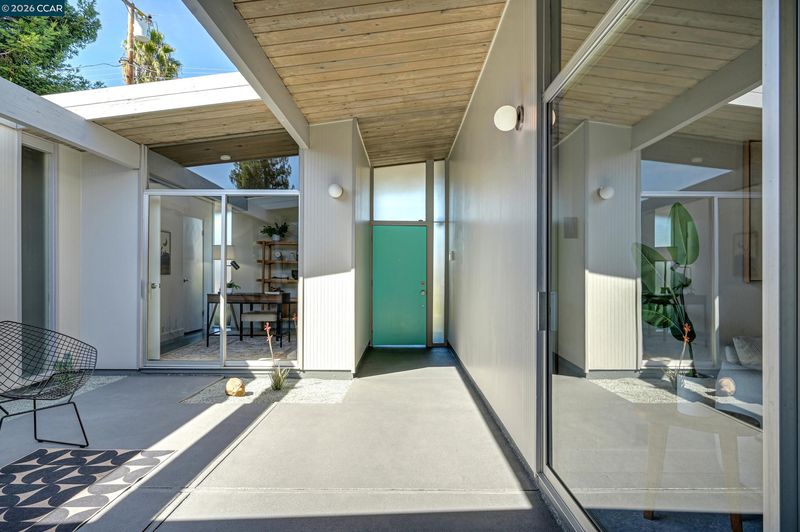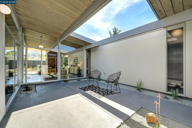Beautiful iconic Eichler located in the charming Rancho de los Santos, thoughtfully refreshed with authentic mid-century details and modern upgrades. Designed by architect Claude Oakland, enter the home through the open-air atrium with a tranquil Zen garden that immediately sets the tone for the home’s timeless design. Inside, enjoy the seamless indoor-outdoor living and classic post-and-beam architecture that Eichlers are renowned for. Lovingly maintained by a family for decades, this mid-century gem offers versatility with four bedrooms PLUS a bonus laundry/office space. Period-correct features include rare unpainted tongue-and-groove ceilings, new VCT flooring, globe lighting and Eichler Numbers. Best of all, enjoy luxurious radiant floor heating powered by a newer radiant boiler for ultimate comfort. Modern upgrades include new AC/heating mini-splits, quartz kitchen countertop, newer appliances, bathrooms, double paned windows & epoxy garage flooring. Rest easy with smart-home features like the A3 doorbell & camera system and a Hydrawise automatic drip irrigation. Ideally located near BART, major freeways and all of life's necessities, this move-in-ready Eichler is ready to welcome its next owners so don't miss your chance to own a piece of architectural history!