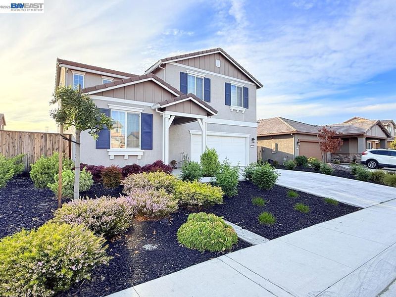 Open House Sunday 3/15 1-3 PM. Beautiful 5-year-old 5-bedroom, 3-bath home in a desirable Antioch neighborhood near the Brentwood border. A beautiful, elegant palm-tree-lined boulevard welcomes you into the community. This bright, like-new home features a spacious family room and dining area and a stylish kitchen with slab granite countertops, a large island, newer stainless steel appliances, and elegant tile flooring. The primary suite offers a large window, a walk-in closet, and a luxurious bath with dual vanities and a glass-enclosed shower. Generous bedrooms with 9-ft ceilings and newer carpet, upgraded bathrooms, recessed lighting, dual-pane windows, central heat/AC, and a large llaundry room with a cabinet, and with gas or electric hookups for dryer. Interior features partial fresh paint throughout, with newly painted garage walls and ceiling for a clean, refreshed look. Beautiful landscaping in the big front yard. Large backyard with low-maintenance landscaping. Wide side yards. Walk to a huge community park. Minutes to eBART, freeway access, Costco, Walmart, big shopping plazas, and business parks—ideal for Bay Area commuters. Don’t miss this move-in-ready gem!