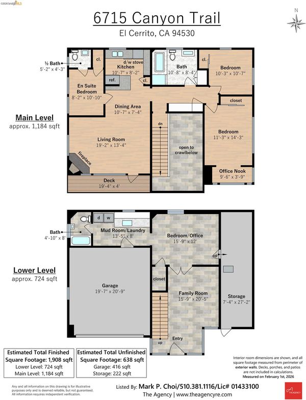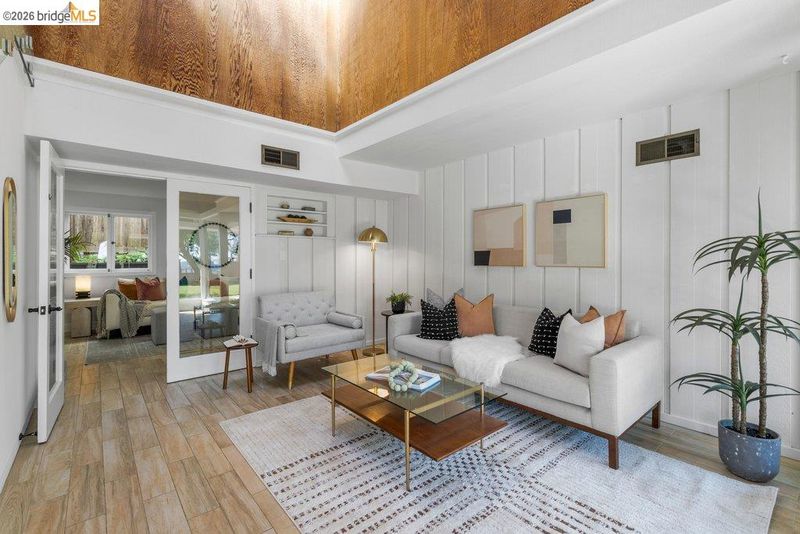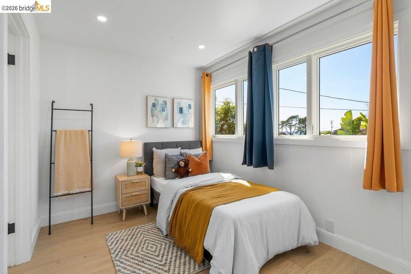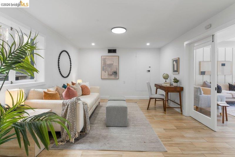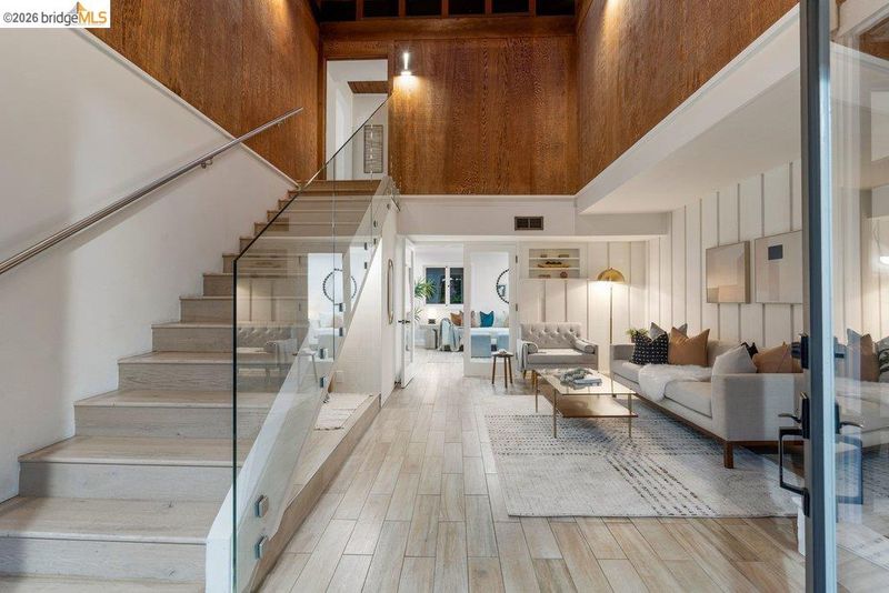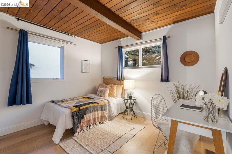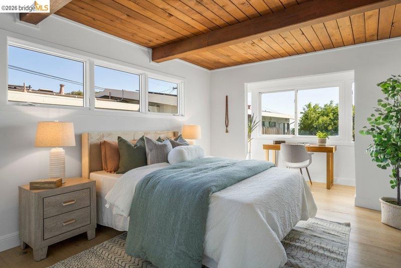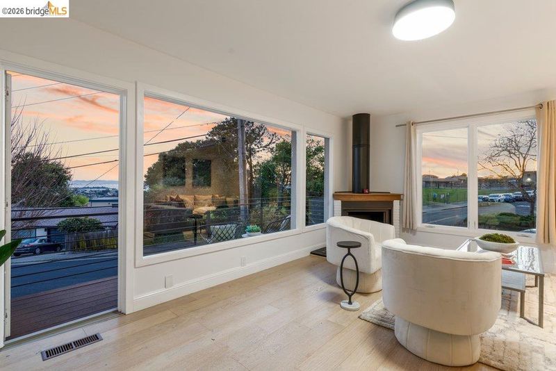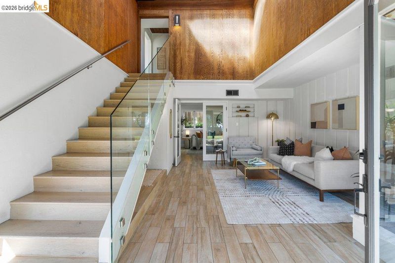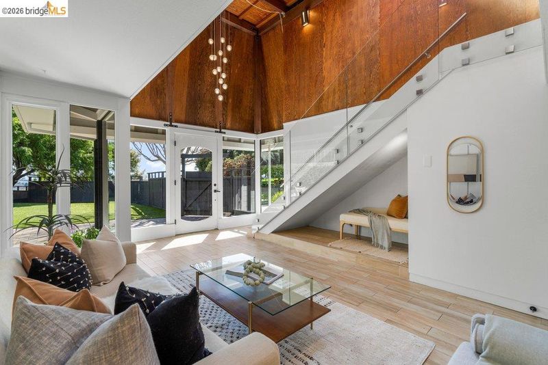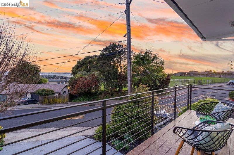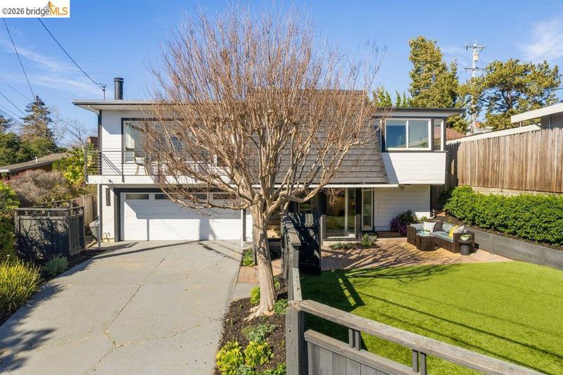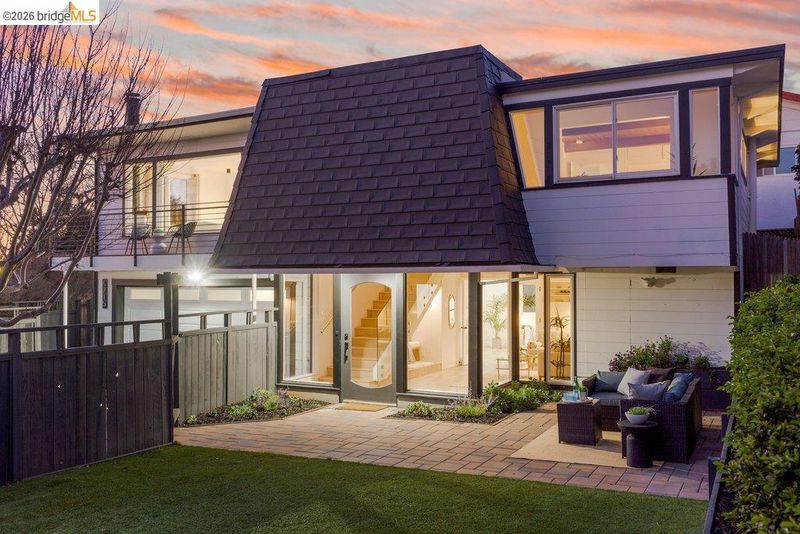 Welcome to 6715 Canyon Trail in the desirable El Cerrito Hills, offering 1,956 square feet of flexible living space across two levels. The entry level features a spacious family room with soaring ceilings, a bedroom or home office, full bathroom, and large laundry room - ideal for guests, work-from-home needs, or multi-generational living. Upstairs, the main level includes three bedrooms and 1.5 bathrooms, with a bright living and dining area that flows into a skylit kitchen. Step onto the deck from the living room to enjoy stunning sunset views and the eastern span of the Bay Bridge. The generous primary bedroom includes a dedicated office alcove positioned to capture the view, while knotty pine wood ceilings add warmth and character throughout the upper living spaces. Additional highlights include a large two-car garage with interior access, a low-maintenance front yard with artificial turf, and an exceptional location just steps from Canyon Trail Park, and convenient access to shopping, BART, and major freeways. Sunday Open 4/5 (Happy Easter) 2-4:30pm.