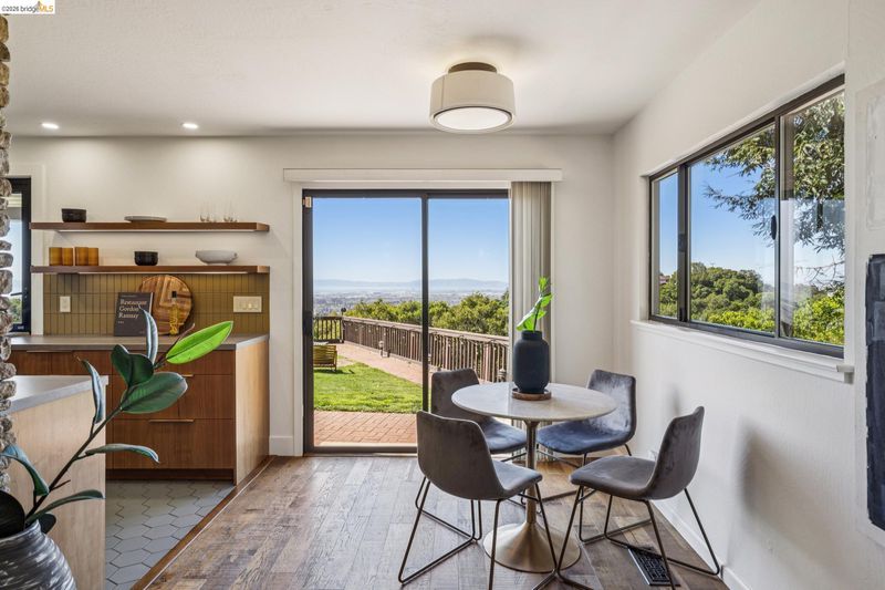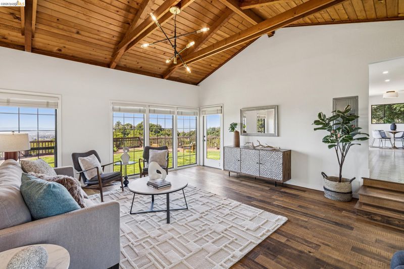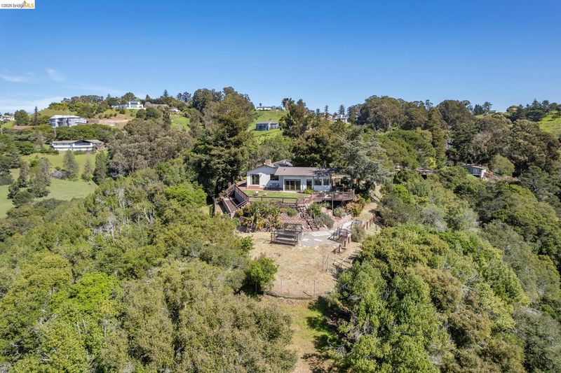 Enchanting, sweeping and glorious! This one checks all of the boxes & more; sunny, expansive views, fabulous indoor & outdoor spaces for every vision & hobby you may have! This end of the private road home is perched on an amazing rock & oak studded knoll with views & privacy in every direction. The serene sun drenched picture perfect 1.76 acre panoramic view lot has various areas to garden, develop an adu or even expand the house. Spacious 3 beds w/ 2 baths (1 en-suite primary), office & formal/informal living & dining rooms are perfect for hosting family & friends. Various exterior patios for evening BBQs & morning breakfast with level exterior areas to garden & let kids or pets roam freely. Extensive updates include but not limited: roofing, 200amp panel with owned solar/batteries, tankless water heater, HVAC with AC, newer kitchen/bathrooms, hardwood floors & all on public utilities to boot. Enjoy the scenic vignettes overlooking the hills, valleys, & bay while watching the Hawks soar & the turkeys roam. Mins to local Coffee & Tea house Charlie May, Lake Chabot & Sequoia country club, downtown Oakland, Oak Airport, East Bay regional parks & all that makes the Bay area great. Gems like this are once in a lifetime!