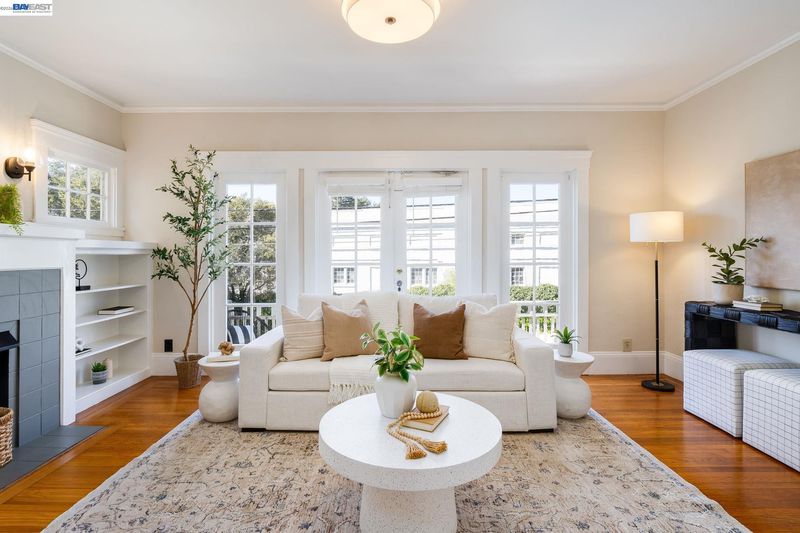 Charming 1920 Traditional-style 1BD/1BA condo offering 916 SF of light-filled living space in a well-maintained 4-unit building. Features include hardwood floors, classic built-ins, fireplace with tile surround, and French doors leading to a private balcony (grilling allowed). Spacious dining room with additional cabinetry. The kitchen includes granite countertops, stainless steel appliances, and a new dishwasher. In-unit washer & dryer. Generous bedroom with ample closet space. Tile bath with shower over tub. Forced air heating. Assigned parking space (immediately right of stairs) + 1-car garage parking. Secure gated entry. Pet-friendly HOA. $300/mo dues cover water, sewer, garbage, and building insurance. Conveniently located near Lake Merritt, Downtown Oakland, and freeway access. Great opportunity to own a character-filled Oakland condo in a prime location.
