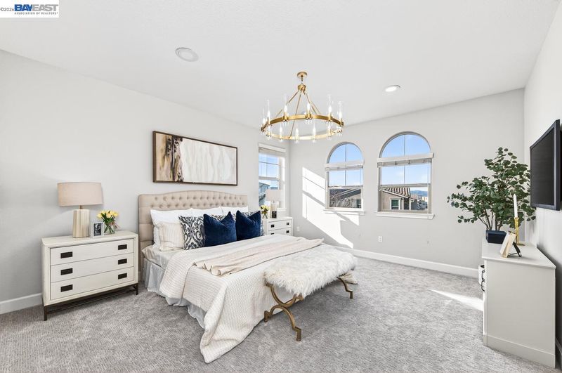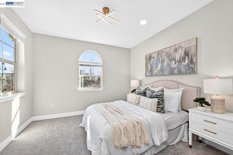 Perfect West Facing, 2 story home with a 3rd story Lavish Loft as a bonus! Remarkably Renovated, in highly desired Gated La Solara community, part of Sorrento community in East Dublin w/ Top Rated Schools. Just steps away from Highly Rated Kolb Elementary & just a short walk to Fallon Middle & New State of the Art Emerald High as well. AND right across from Dublin's Largest Sports & Children's park. You'll Love Open Floor Plan w/ Tall Ceilings. Stunning Kitchen has Elegant Island & Countertops, Modern White Cabinets & S/S Appliances. Sizable Family/Great Room is ideal for family & friends! Sliding Glass Door leads to low maintenance yard, perfect for outdoors enjoyment & relaxation! On 2nd floor, Primary Suite is Lavish in size w/ Spa style bathroom! And, 2 Spacious secondary bedroom suites each with a dedicated full bathroom. 3rd story offers a Multipurpose Room with a half bathroom; use it as a 4th bedroom, Lavish Loft, Office, Media or a Game room. Home is Loaded w/ Upgrades: Renovated Kitchen, New Premium Flooring All throughout, Tesla Solar, Chic Light Fixtures & Recess Lights throughout, New Custom Two-tone Premium Paint, & more! Location, Layout & Chic Interiors, this home has it all, do NOT miss! Open House: Sat & Sun, March 14th & 15th, from 1-4:00pm