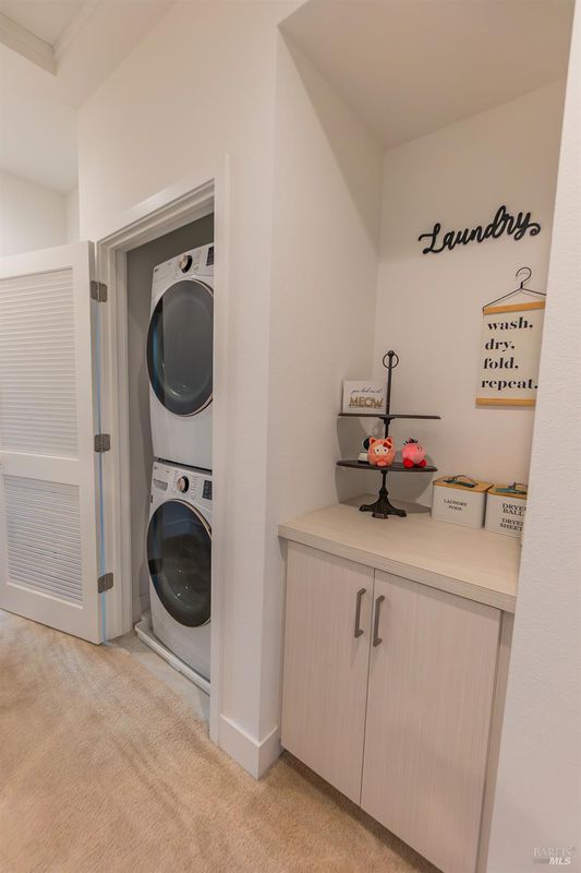 - Cabinets, Dryer Included, Electric, Hookups Only, Laundry Closet, Upper Floor, Washer Included