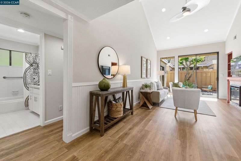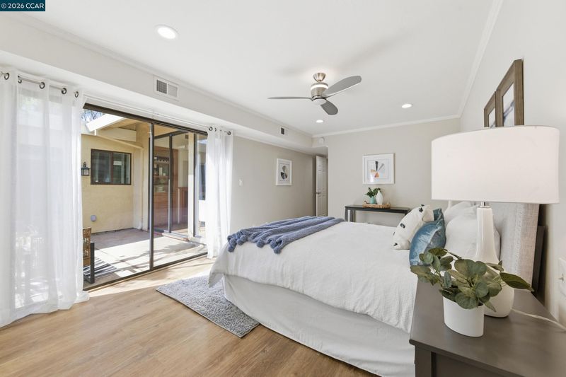 Effortless single-story living & thoughtful recent updates define this beautiful, light-filled townhome in Walnut Creek’s desirable Rancho Dorado community. Vaulted ceilings in the living room, a cozy fireplace with a custom mantel, crown moldings, recessed lighting, & expansive windows create a warm & inviting atmosphere filled with natural light. Freshly painted & lovingly maintained, the home features a beautifully updated kitchen with a cozy breakfast nook, stylish flooring, modern light fixtures, ceiling fans, & a dining area that flows into the living area. The spacious primary suite includes a newly updated bathroom & access to the private courtyard. The courtyard, accessible from the kitchen, living room, & primary bedroom, creates a peaceful outdoor retreat ideal for morning coffee or entertaining. An inviting front patio provides a welcoming entry. Additional highlights include a finished 2-car garage & a whole-house fan for energy efficiency. Residents enjoy a pool, tennis courts, & greenbelts. Conveniently located near shopping & dining, great schools, Iron Horse Trail, BART, Hwy 24/680, and minutes to downtown Walnut Creek, Heather Farm Park, John Muir Medical Center, & Shadelands. Come see this move-in ready home today!
