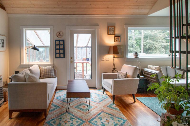 Classic Mendocino Cottage easy-walk-close to Mendocino Village, Headlands State Park, Big River Beach - and the ocean - on sunny .93+/- acre parcel in serene, tranquil neighborhood. 2 bedrooms, 1 full bath with marble tile floor, 1 half bath - and outdoor clawfoot tub and shower! Sunny decks, solarium and detached 10'X12' (Art, Music, Meditation, Retreat, Office) Studio. Lovely gardens with a long-term focus on care for nature and a greenhouse/workshop shed with carport make for easy at-home sanctuary living. Great light, high ceilings and natural finishes throughout; simple and easy floor plan. Walk to schools, stores, art center, fantastic scenery, great restaurants and so much more! Easy to see - and love living Mendocino life!