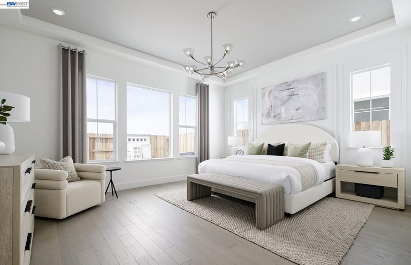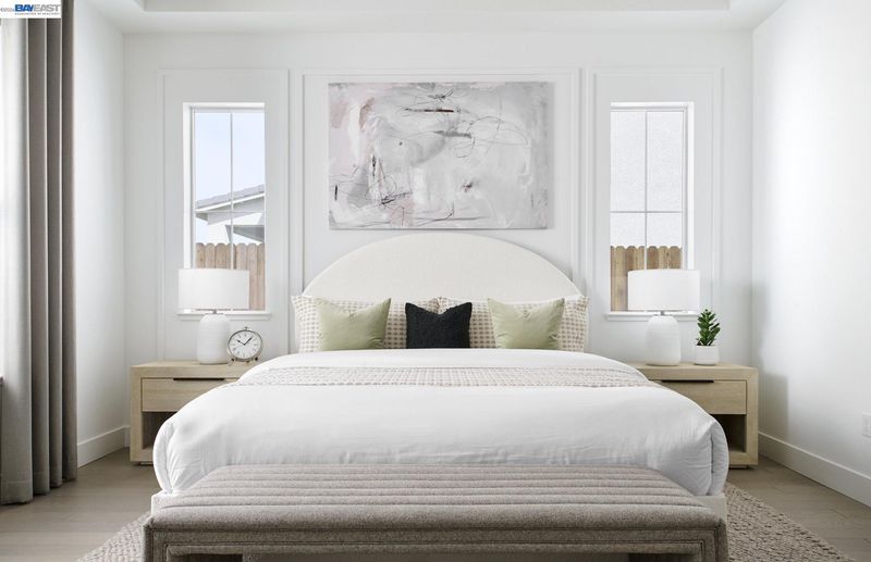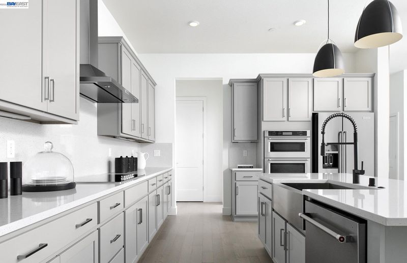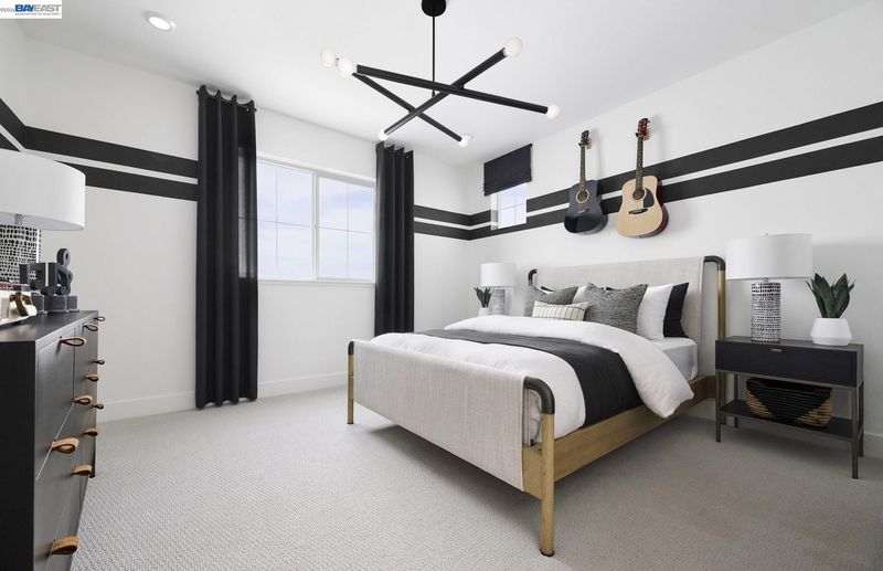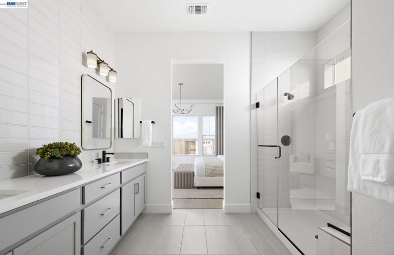 This Plan 2 home will be ready to move into this summer, and includes modern cabinets and white quartz countertops in the kitchen. The open floor plan features a spacious owner's suite, with a convenient bedroom and full bathroom on the entry level. Photos of model home not of actual home.