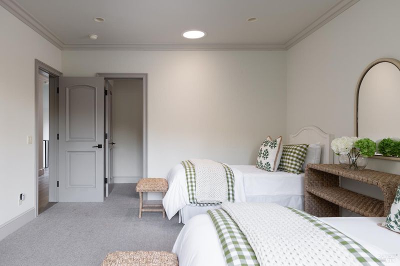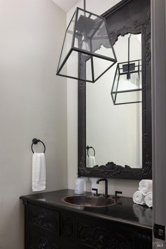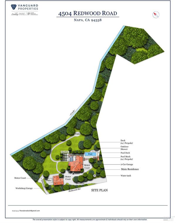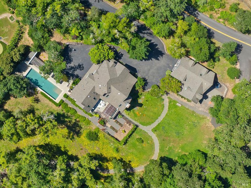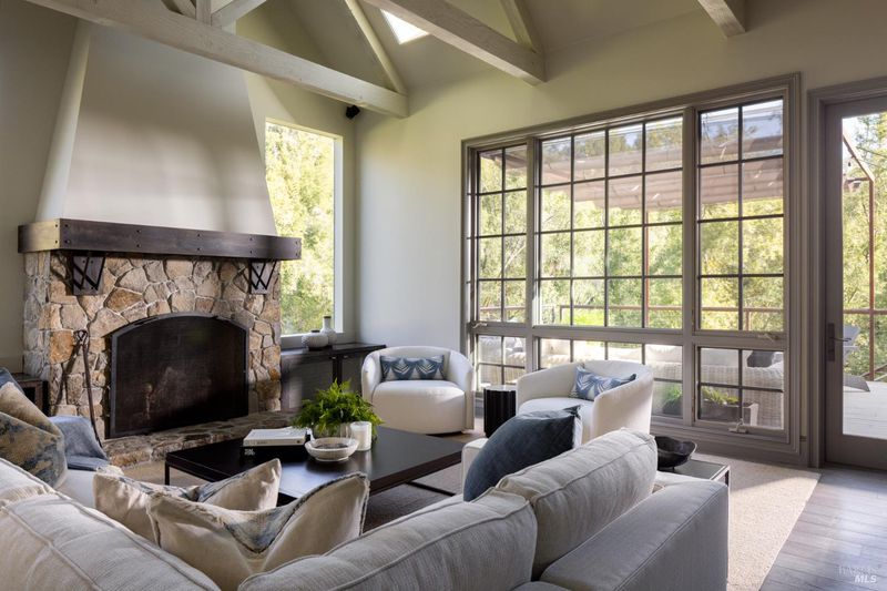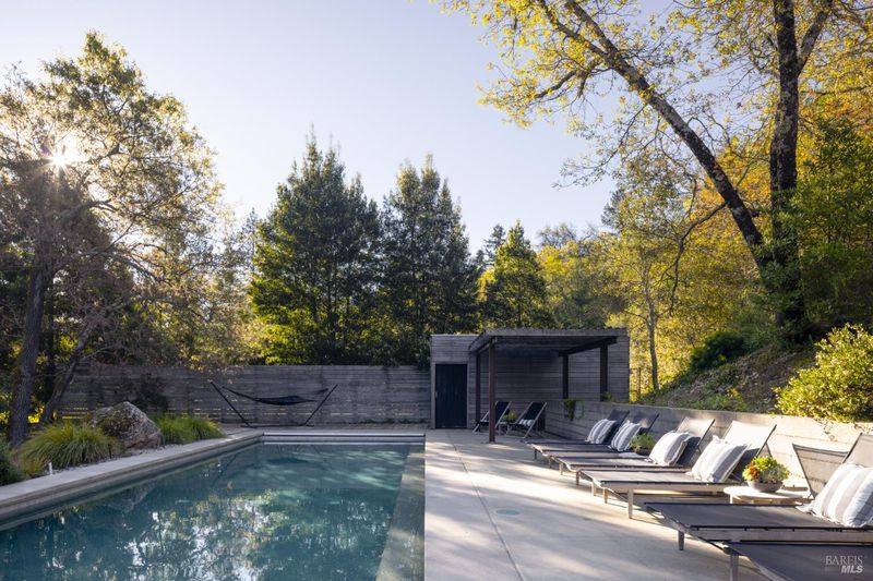 Where modern luxury meets natural beauty, this quiet and ultra-private, creekside sanctuary offers the perfect blend of elegance and tranquility. Set on 3.84 lush acres, this impressive estate includes a 3,595 sq. ft. main residence, a 2,675 sq. ft. barn with incredible flex space, and a gorgeous pool area, all sited just up the knoll from a seasonal creek that flanks the property. The thoughtfully updated 4-bedroom, 3.5-bath home features a chef's kitchen with top-of-the-line appliances, a large island, and a custom coffee and wine bar, ideal for entertaining or enjoying quiet mornings. The living and dining areas provide an intimate ambiance, while the vaulted wood-beamed family room showcases a wood-burning fireplace, soaring windows, and seamless access to an Ipe wood deck. The first-floor primary suite offers vaulted ceilings, a spa-like bathroom with soaking tub, and direct access to the outdoor shower and pool. Outside, unwind beside the 50' x 15' heated pool, harvest from your own enclosed garden, or explore the peaceful creekside setting. Located just down the street from Hess Winery and under 6.5 miles to Whole Foods and Browns Valley Market, this property is the ultimate Napa Valley retreat.