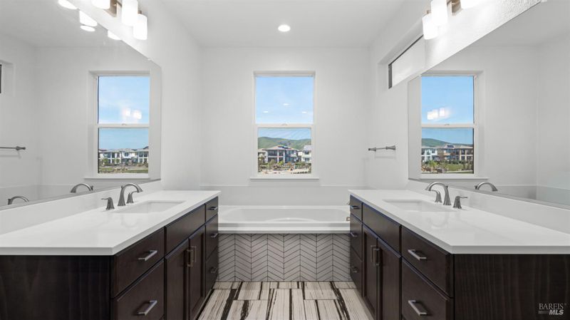 - Double Sinks, Shower Stall(s), Sunken Tub, Walk-In Closet, Window