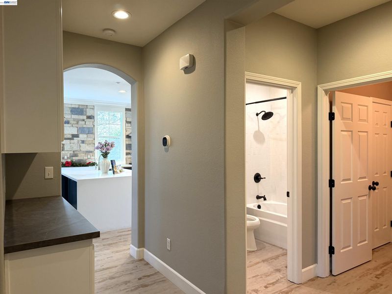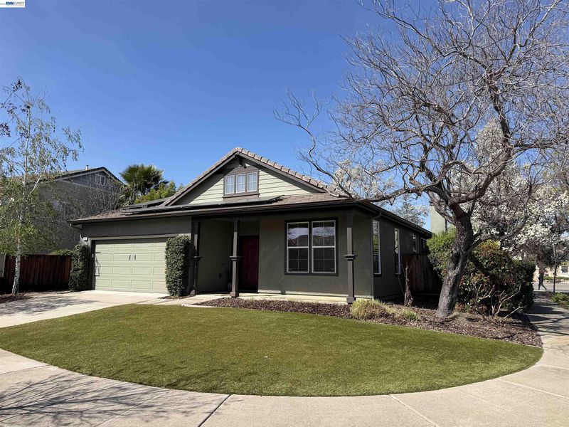 Look ! This is one story house COMPLETELY REMODELED two years ago. When you & family arrive that you will appreciate the large corner lot with good maintained landscaping and fresh exterior paint. South facing front door you will see the luxuriously upgraded interior with wide plank LVP flooring throughout, two tone neutral paint, new lighting, crown molding, wood detail work, stone accent wall, custom cabinetry and modern linear fireplace. Spacious chef style kitchen with all solid wood cabinets, quartz counters with waterfall edge, high end stainless appliances and gas range, abundant counter seating and large pantry. Fully remodeled baths with stunning tile work two years ago . Large outdoor living space with built-in BBQ equipment , colorful brick bar counter & seats . spa tub,ceiling fan and lighting, remote control metal sunshade canopy top switch & more ... All appliances, backyard furniture and spa tub, Water softener system included . The solar panels with Tesla energy storage battery & EV car charger system installed 12/2024 paid off by owner , had 25 years transferable limited warranty . Spacious floor plan with high ceilings & more so this is your dream home come to see it with family ! Open House : 03/28 Saturday 1--4 PM 03/29 Sunday 1--4 PM