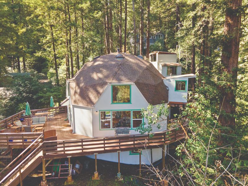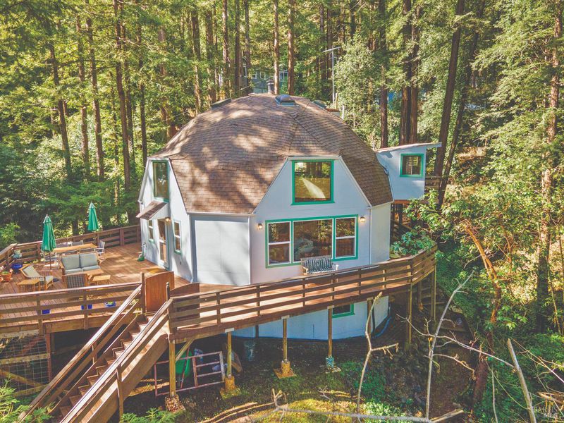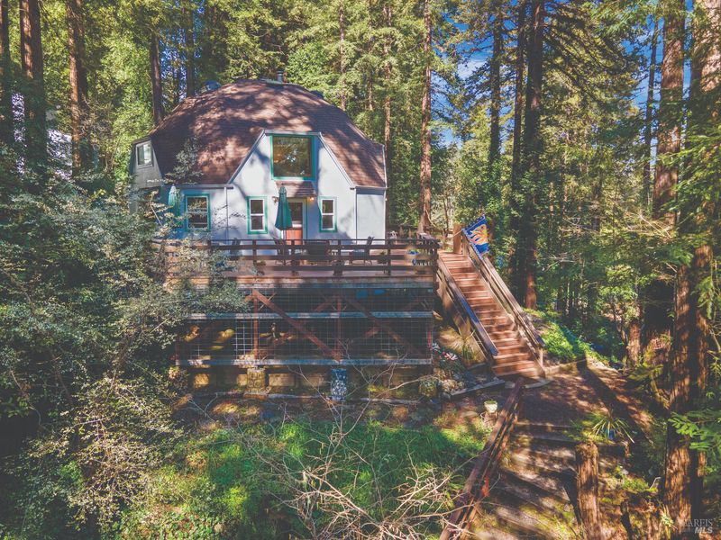 Light, bright, and truly one-of-a-kind! This custom-built dome home offers an open floorplan filled with natural light and architectural charm. The airy main living space flows effortlessly, creating a warm and inviting atmosphere perfect for both everyday living and entertaining. Step outside onto the beautiful deck and take in the gorgeous views; an ideal setting for morning coffee or evenings under the moon and stars. Unwind in the private hot tub while enjoying the serene and peaceful surroundings. This home feels like a tranquil retreat, tucked away yet welcoming and comfortable. Inside, you'll find a versatile layout that includes a second acting bedroom, loft space, and a sunroom that brings the outdoors in. The flexible spaces provide endless possibilities for guests, office use, creative pursuits, or relaxation. Downstairs features a recreation room complete with a laundry area and dedicated workout space, adding functionality and convenience. A covered carport provides protected parking and additional practicality. The home is walking distance to the Russian River and the unique local cafe, Lightwave, known for its delicious food and desserts. Enjoy easy access to the coast and incredible hiking at nearby state and local parks. With its unique dome design, abundant light, and peaceful setting, this special property offers character, comfort, and inspiring views all in one remarkable home.