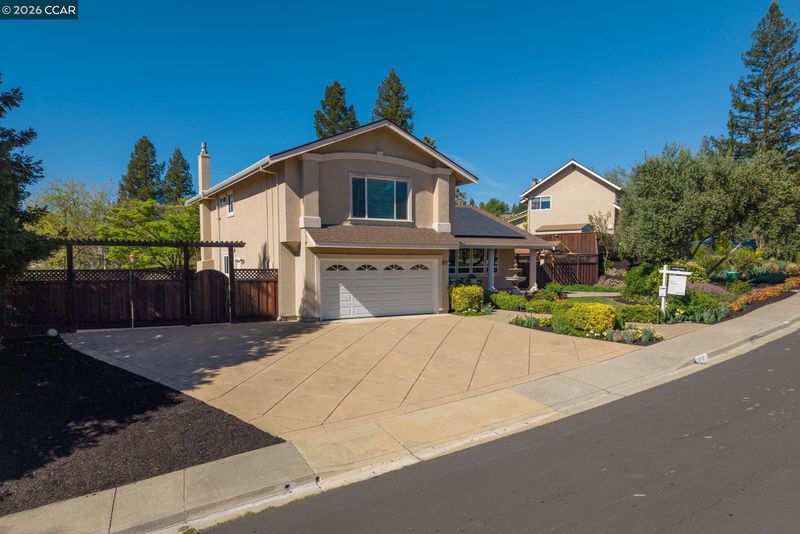 Discover an exceptional indoor-outdoor lifestyle in one of Danville’s most desirable and convenient locations. This beautifully updated four-bedroom home offers a warm, inviting atmosphere with thoughtful improvements throughout. Set on an expansive 10,000± square foot lot, the backyard is a true showstopper—designed for both relaxation and entertaining. Enjoy a stunning pool, outdoor kitchen, professionally designed landscaping, mature fruit trees, Las Trampas views, and a thriving garden, all creating a private retreat perfect for enjoying Danville’s idyllic evenings. The light-filled eat-in kitchen is both functional and elegant, featuring premium Miele cooktop and ovens, a Bosch refrigerator, and a wall of windows that seamlessly connects the indoors with the outdoor living spaces. Additional highlights include a detached office or studio, owned solar, and convenient side yard parking. Part of the Danville Place HOA with nearby greenbelt trails, community pool and tennis. Ideally located near award-winning schools, with excellent commute access and just minutes from the shops, dining, and charm of downtown Danville. This home is truly a 10+, offering the perfect blend of everyday convenience and tranquil neighborhood living.