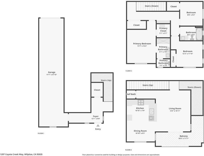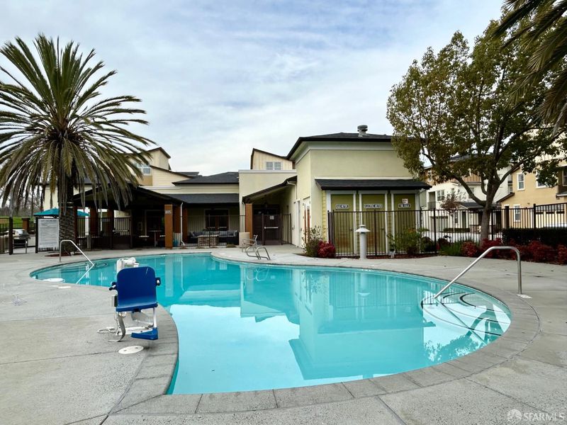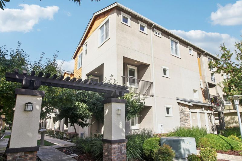 Welcome to this elegant tri-level, end-unit townhouse-style condo in the desirable Coyote Creek community. This stunning home offers abundant natural light, modern upgrades, and a bright, open layout. The main level features spacious living and dining areas with wood floors and a stylish kitchen with quartz countertops, a mosaic backsplash, maple cabinetry, premium fixtures, and pendant & recessed lighting. A half bath and a generous L-shaped balcony complete this level with a seamless extension of the living space. All three bedrooms are on the top floor, including a comfortable primary suite with a walk-in closet with customized organizer and an upgraded bath with double sinks, marble-topped vanities, mosaic backsplash, and tiled floors. The additional bedrooms are well-sized, and the third bedroom offers wood flooring, ideal for an office or flexible workspace. Highlights include dual-zone heating and A/C, plantation shutters, custom window coverings, interior laundry hook-ups, a water softener, and an attached 2-car tandem garage. Community amenities include a heated pool, fitness center, clubhouse, BBQ area, outdoor fireplace, and more. Easy access to Cerano Park, the Coyote Creek Trail, major tech employers, Ranch 99, Walmart, dining, shopping, BART, and commuter routes.
