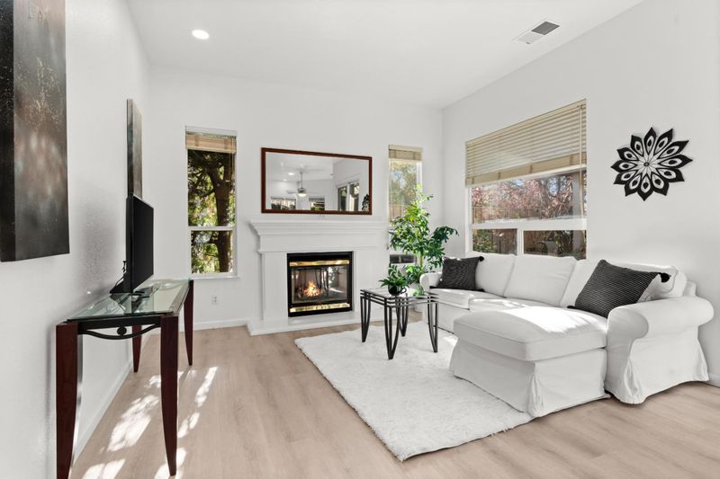 Discover this beautiful and well maintained home blending thoughtful design with everyday comfort on an extremely private lot. High ceilings, large windows, and seamless indoor-outdoor flow create an open feel. The large chefs kitchen has abundant storage and opens to the family room with fireplace. Separate dining and living room with second fireplace for gracious entertaining. Expansive primary retreat includes a private sitting area perfect for reading or relaxing, a large walk-in closet, and a dual vanity bath. A large ensuite guest room boasts 2 closets. Versatile den with custom built-ins for home office include a craft table and a Murphy bed for extra guests. The back patio overlooks a serene green space with no rear neighbors, ideal for morning coffee or dining. Extended 2-car garage with storage cabinets and space for your golf cart. Zero-step entry, an open layout, and a fully accessible shower make this ideal for aging in place. This home blends comfort, function, and style in an active 55+ guard-gated community providing 24/7 security. Enjoy golf, tennis, pickle ball, bocce, hiking, pools, spas, recreation rooms, gardens, fitness center, library and over 60 clubs, organized trips and more! There is a restaurant and Bistro for your dining pleasure.