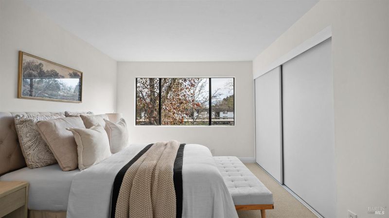 Light and airy upper-level one-bedroom in Vineyard Villas offering an exceptional floor plan that lives larger than expected. The living room features vaulted ceilings, a wood-burning fireplace, and a sliding glass door opening to a spacious private balcony for easy indoor/outdoor living. The granite kitchen features newer appliances and a dining bar that opens to the formal dining room. A roomy bedroom suite includes a shower-over-tub bath with a linen closet and separate vanity area, along with an in-unit washer/dryer closet. Three additional well-placed closets provide efficient storage throughout. Assigned parking includes one carport space and one uncovered space. HOA dues of $640/mo cover water, trash, sewer, exterior and grounds maintenance, insurance, roof, and access to the beautifully maintained community pool. Minutes from shopping, restaurants, gyms, and parks, with easy access to hiking and biking along Copeland Creek Trail, which connects to Rancho Cotati High School and Sonoma State University. Conveniently close to the SMART Train and Highway 101.