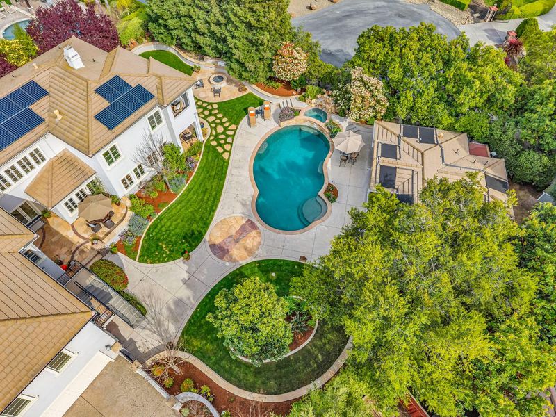 Experience the pinnacle of Morgan Hill luxury in the exclusive, no-HOA enclave of Coyote Creek Estates. This 5,576 SF custom masterpiece blends Old World plaster-style elegance with grand-scale architecture, featuring soaring ceilings, a dedicated executive library, and a stunning 1,000+ bottle climate-controlled wine cellar. Designed for the high-achieving professional, this home is a sanctuary of permanence and prestige. The grounds transition into a private five-star resort, centered around a Pebble Tec pool and a one-of-a-kind cabana. This detached entertaining pavilion features a full granite kitchen, fireplace, and private bath, offering a seamless indoor-outdoor lifestyle. Whether hosting a summer gala or a quiet evening by the fire pit, the level of craftsmanship is unparalleled. True luxury is found in the estates compound flexibility. Beyond the four en-suite bedrooms in the main houseincluding a convenient downstairs junior suitethe property features a private 944 SF Guest House and an additional suite above the garage with an exterior entrance. Fully optimized for 2026, the home includes owned Sunpower solar and a Tesla charging station, ensuring modern efficiency within a timeless legacy estate.
